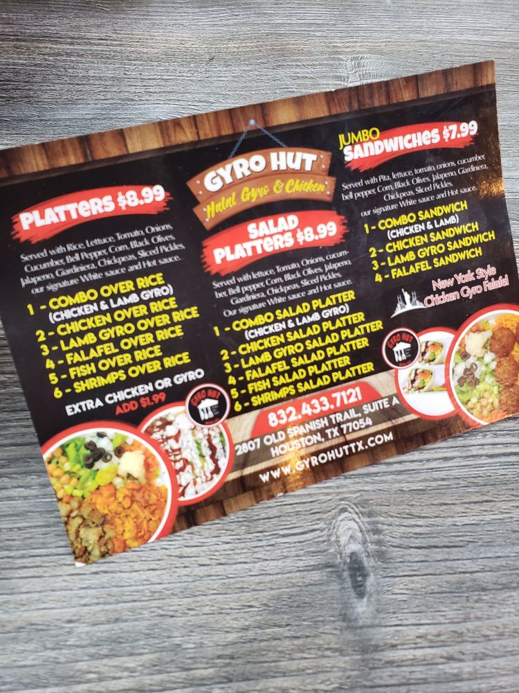 Gyro Hut, located in Houston, TX, offers a diverse range of Mediterranean and Middle Eastern dishes, including halal options. The menu boasts popular items like the Combo Platter, Lamb Gyro Platter, Chicken Platter, and Falafel Platter. Customers have praised the freshness of the salads, the tenderness of the lamb, and the well-seasoned fries. The casual ambiance, wheelchair accessibility, and various payment options make dining at Gyro Hut convenient and enjoyable. Reviews highlight the generous portions, affordable prices, and efficient service. Whether you're craving a hearty combo plate or a flavorful salad, Gyro Hut delivers on quality and taste. Don't miss out on their happy hour specials and the excellent variety of vegetarian and vegan options available. Gyro Hut is a must-visit spot for a satisfying Mediterranean feast.